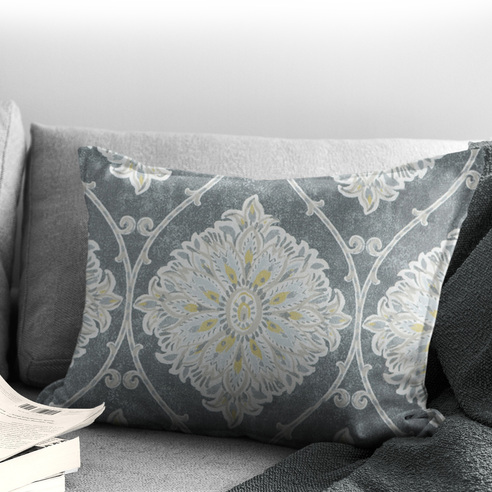 Add to cart belowMorelow is a classic design with a modern color combination. A bold distressed flourish pattern in shades of cream, taupe, and butter is elevated against the soothing soft gray backdrop, providing a sense of serenity and style.