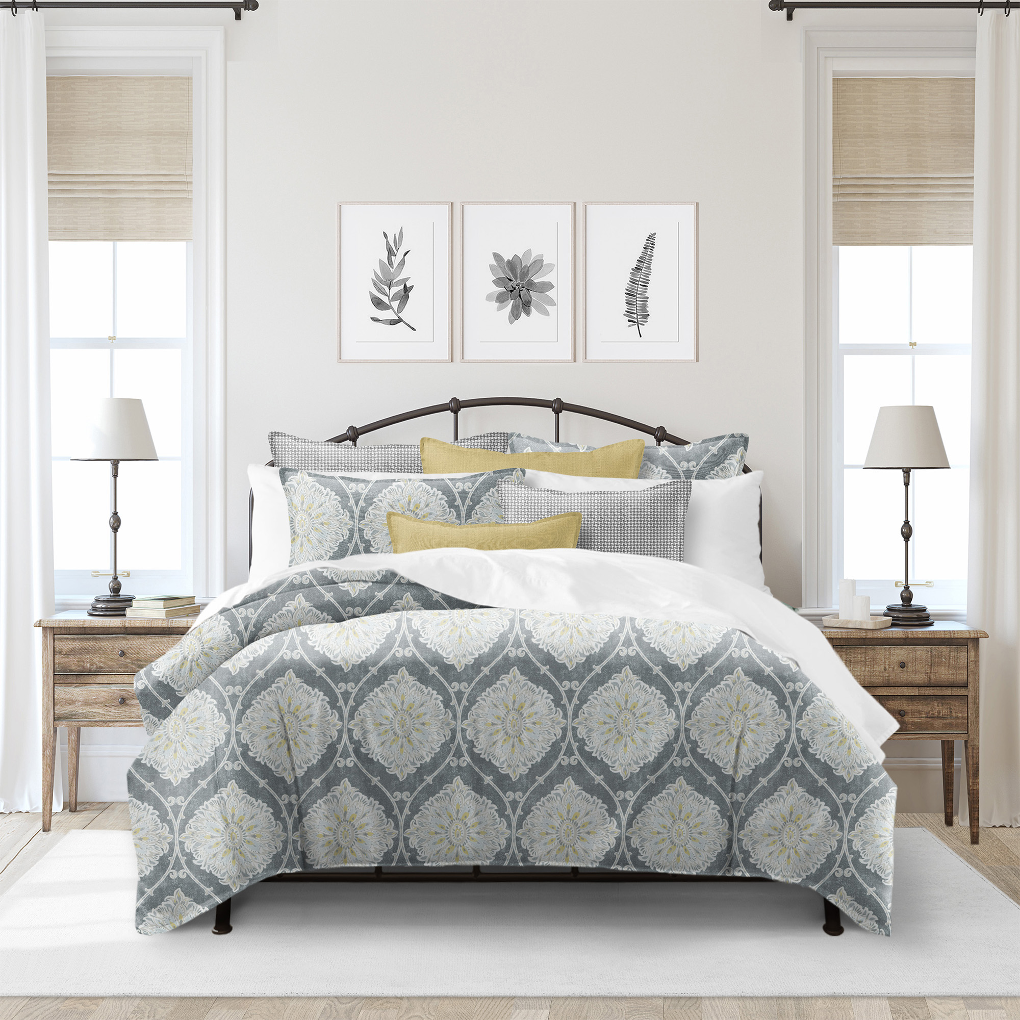 - Pillow shams have a hidden zipper closure and reverse to the same fabric.